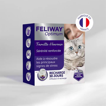 Les produits à base de phéromones de synthèse reproduisent ces signaux rassurants. Ils aident les chats à se sentir plus sereins, à normaliser leur comportement et à mieux s’adapter aux situations stressantes (déménagement, transport, cohabitation, changements dans la maison, etc.).