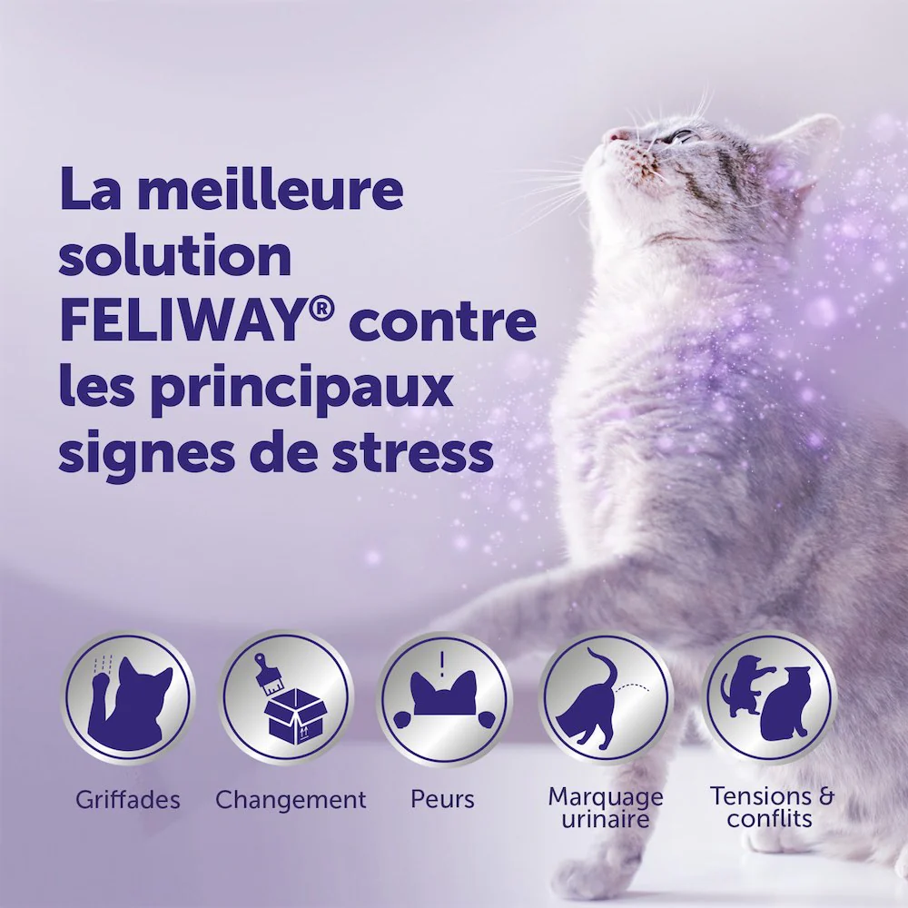 - 🐾 La solution anti-stress la plus complète – agit sur plusieurs signes de stress, des griffades aux tensions entre chats